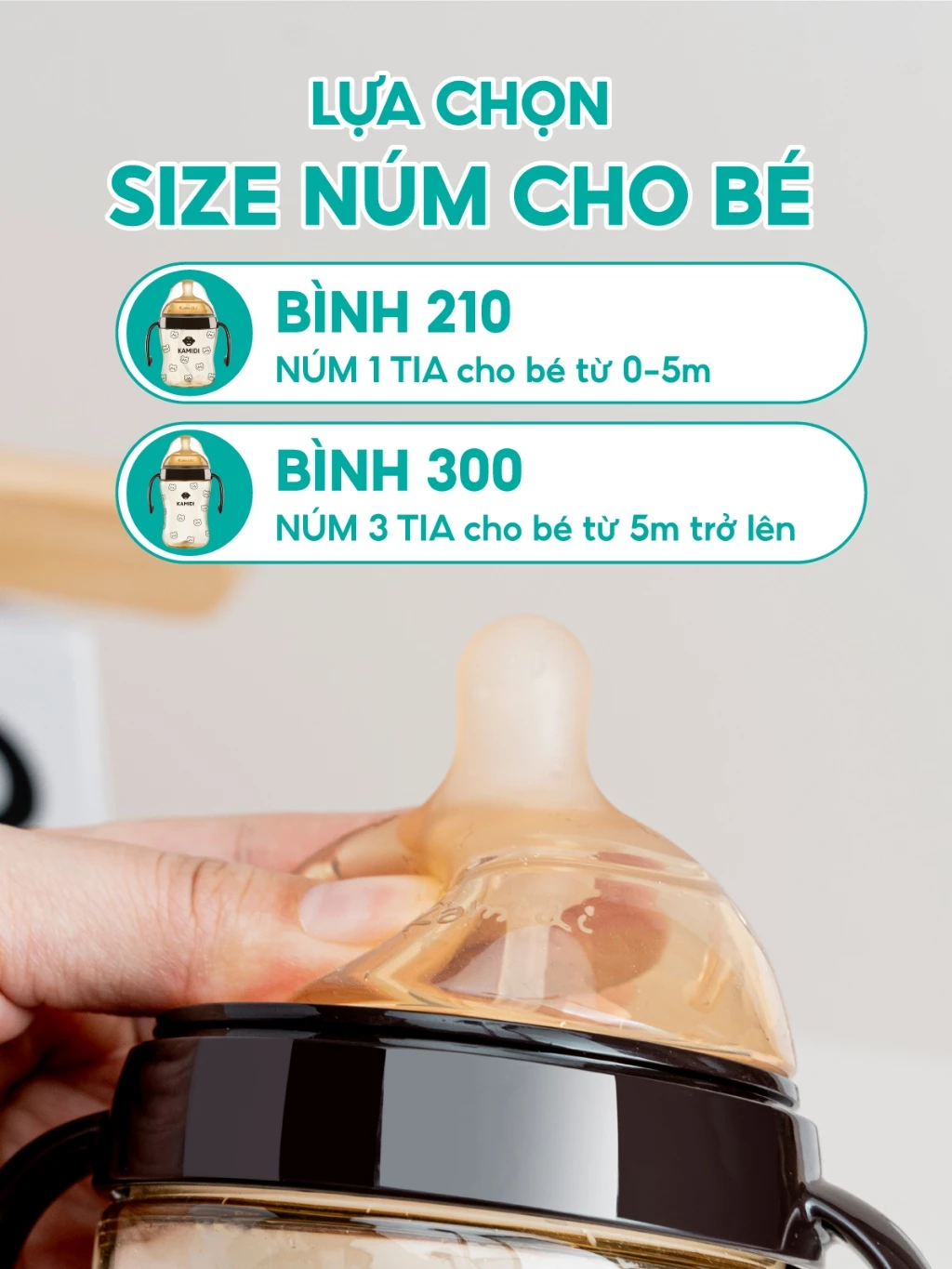 | Độ tuổi sử dụng | Từ 0 – 6 tháng tuổi: bình 210ml Từ 6 tháng tuổi trở lên: bình 300ml |