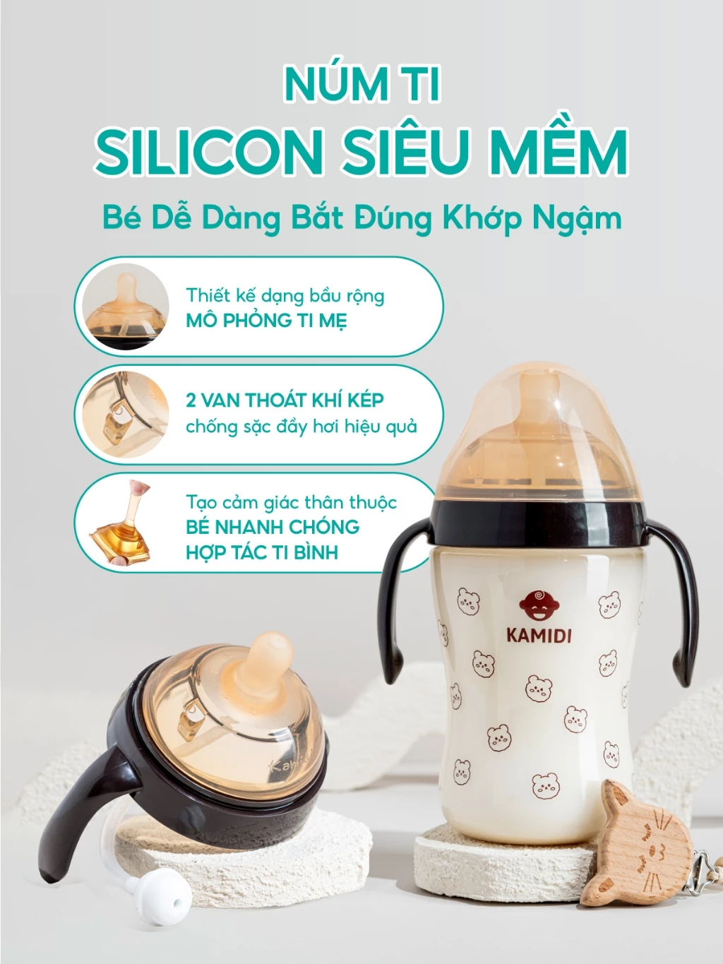 Bình bú sữa Kamidi PPSU được cộng đồng các mẹ bỉm sữa biết đến với cái tên “bình sữa triệu bé mê”, đi đầu trong việc mang đến cho bé trải nghiệm thật như bú mẹ thông qua núm ti mô phỏng hoàn hảo bầu ti mẹ, giúp mẹ chuyển từ bú bình sang bú mẹ dễ dàng hơn. Phiên bản mới ra mắt, bình sữa gấu Kamidi PPSU hoạ tiết xinh xắn với thiết kế thông minh, chất liệu cao cấp và nhiều tính năng vượt trội, đáp ứng mọi nhu cầu khắt khe của ba mẹ trong hành trình chăm sóc bé yêu. Hãy cùng khám phá những ưu điểm tuyệt vời của bình sữa gấu Kamidi PPSU trong bài viết dưới đây nhé!